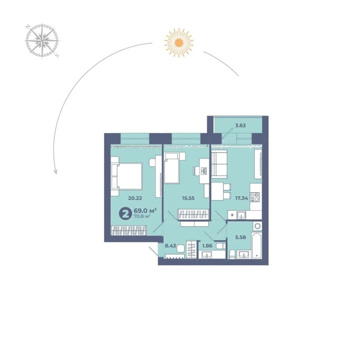 Площадь от 70.6 м2