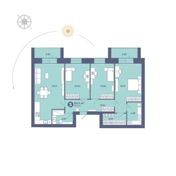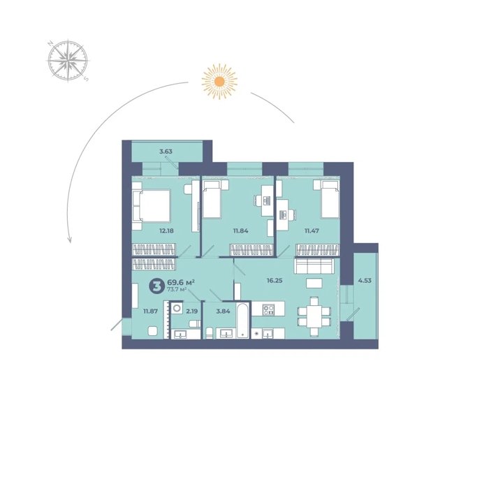 Площадь от 73.7 м2